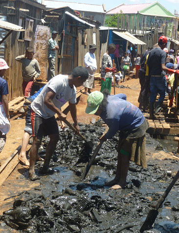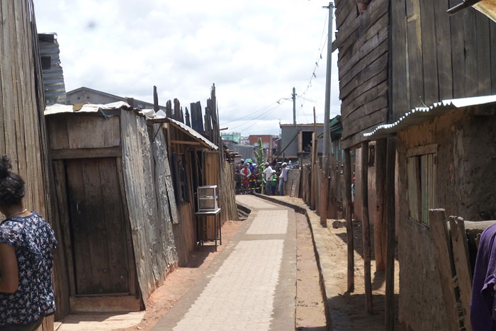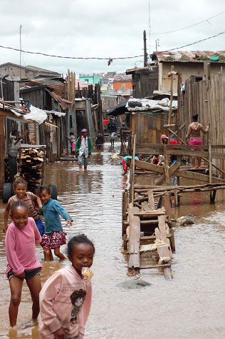 En el barrio de Antohamadinika, en el centro de Antananarivo, capital de Madagascar, durante la estación de lluvias es imposible caminar sin hundir los pies en el agua. Es consecuencia del mantenimiento deficiente de los canales de desagüe, pero además, la ineficaz gestión de los residuos no contribuye a mejorar la situación. Las calles, de por sí estrechas, se inundan y la basura rebosa el canal que atraviesa el barrio. Esta situación tiene un impacto enorme en las condiciones de vida de los habitantes, que viven en situaciones difíciles. Las casas se deterioran, el tráfico se ve limitado y la humedad y la insalubridad aumentan las enfermedades.